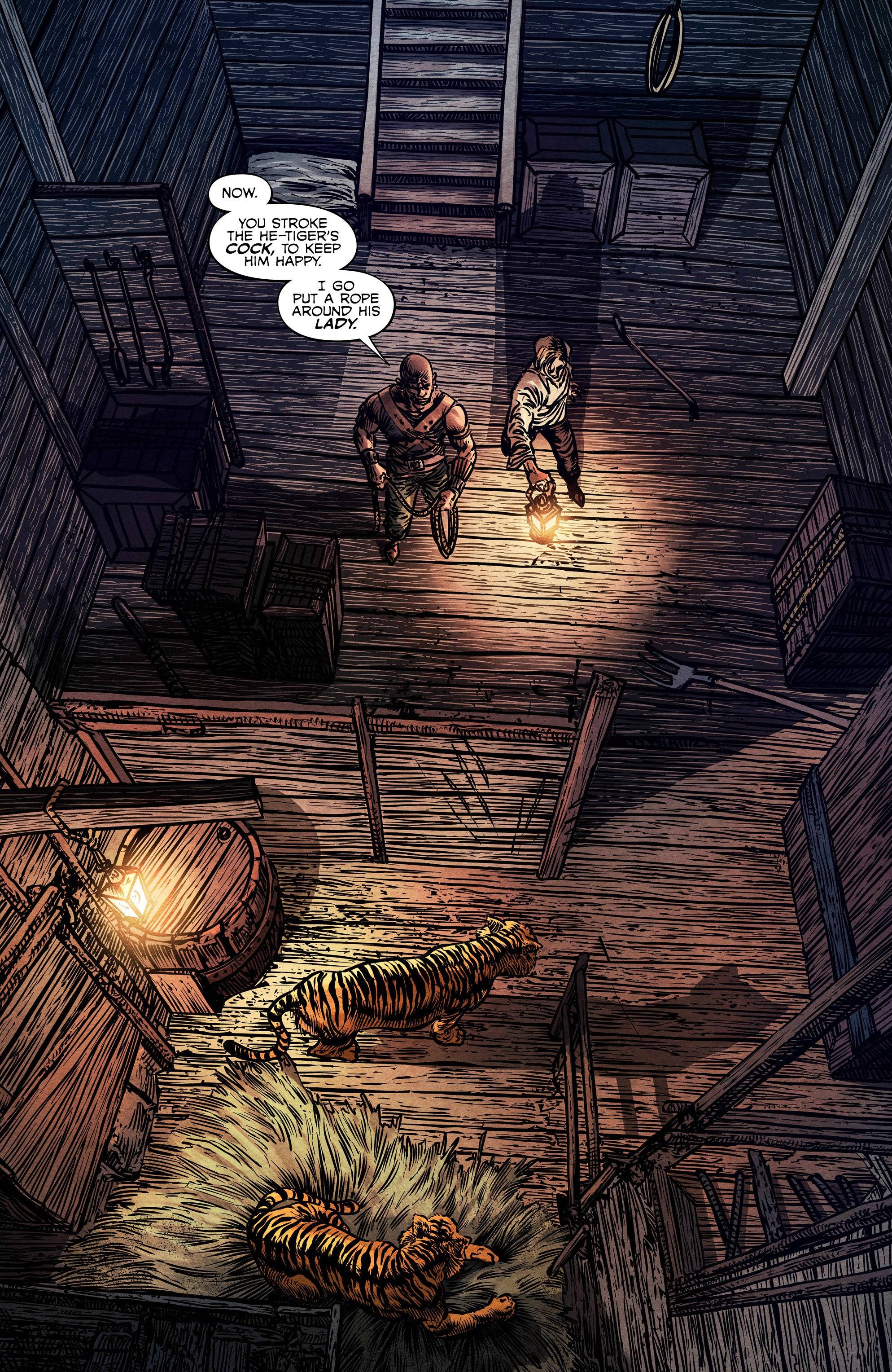 1777 : 아프리카에서 돌아온 노련한 빅 게임 사냥꾼 그룹이 작은 영국 섬 근처에서 난파됩니다.